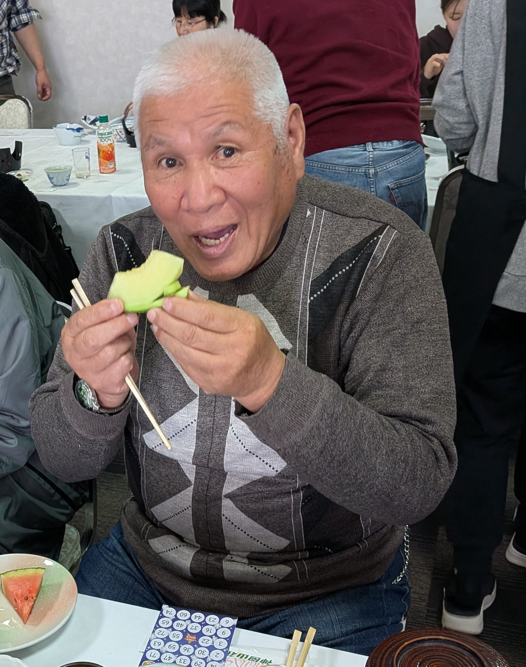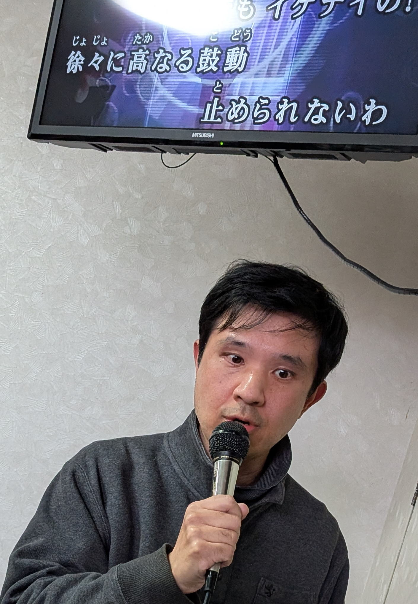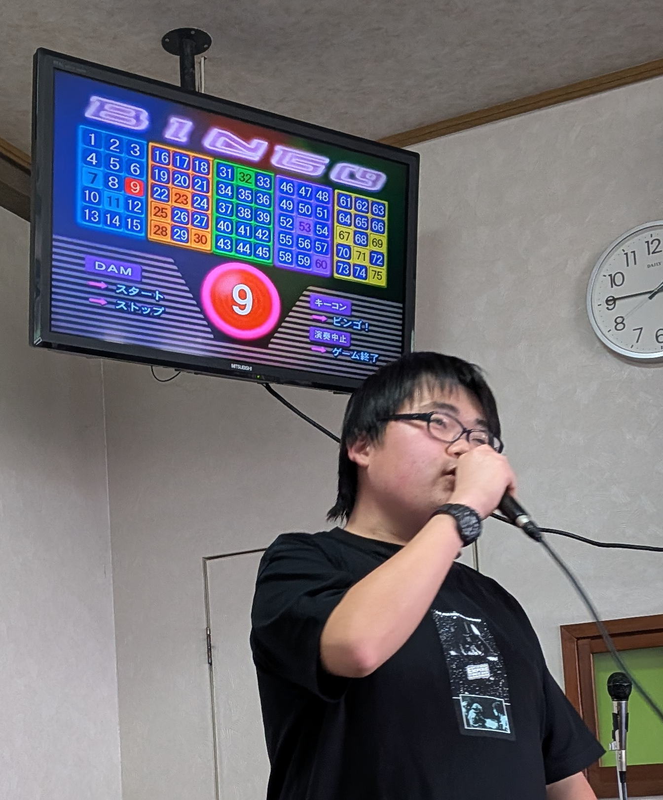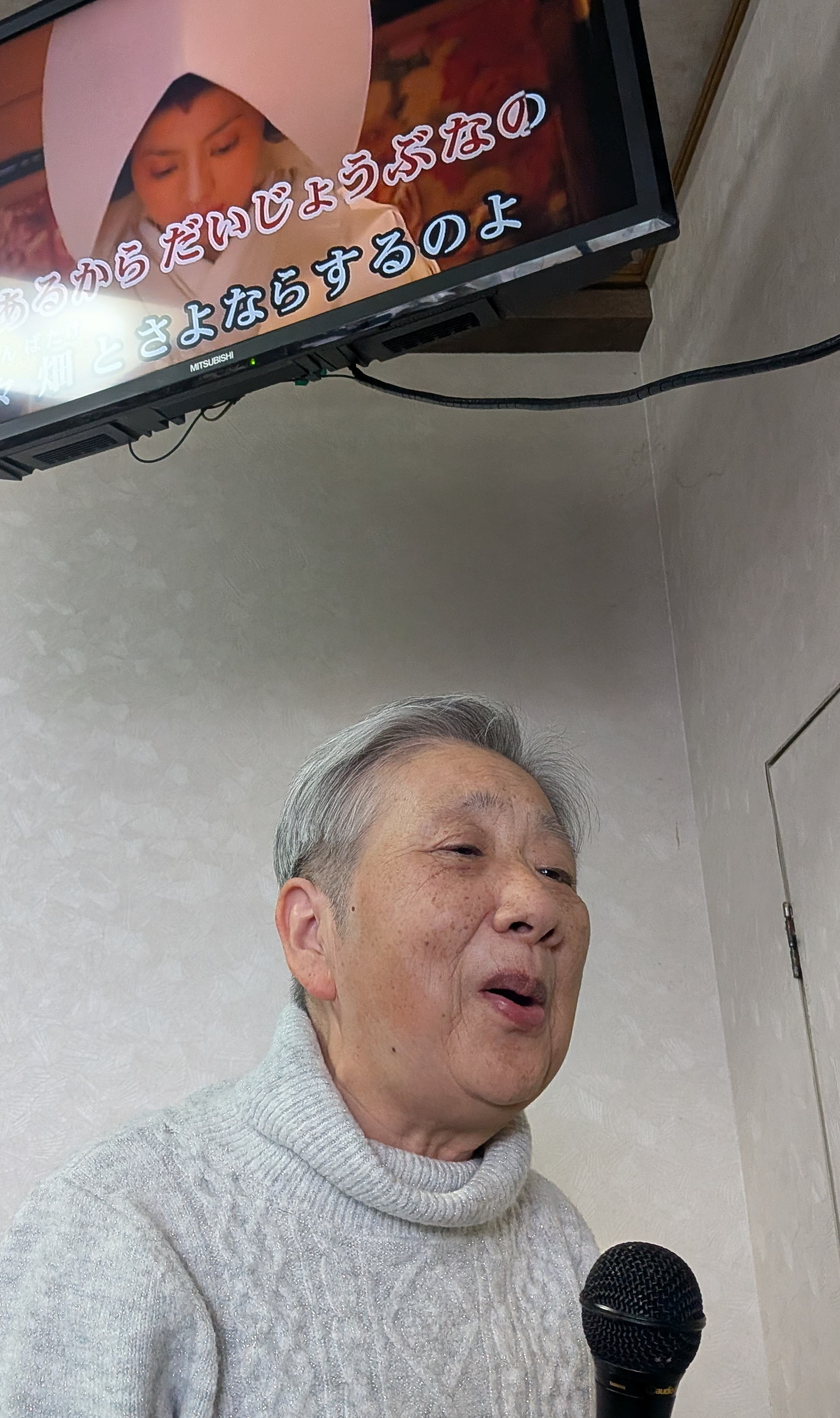 調理に参加しない人たちは音楽室でカラオケをたっぷり楽しみ、その後、大ホールで会食をしました。