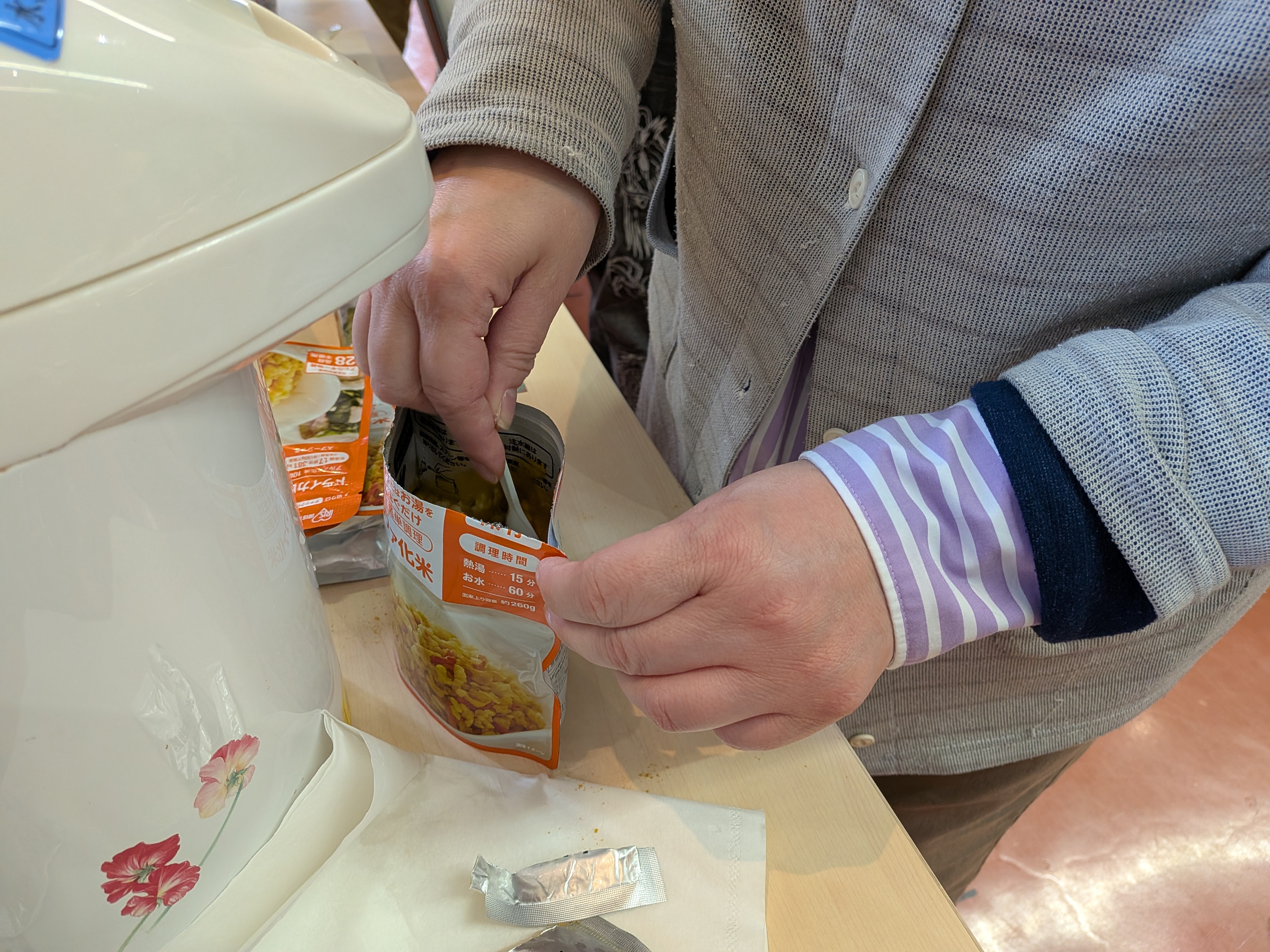 その後、非常食作りを実際に体験しました。思っていたより、とてもおいしかったです。
