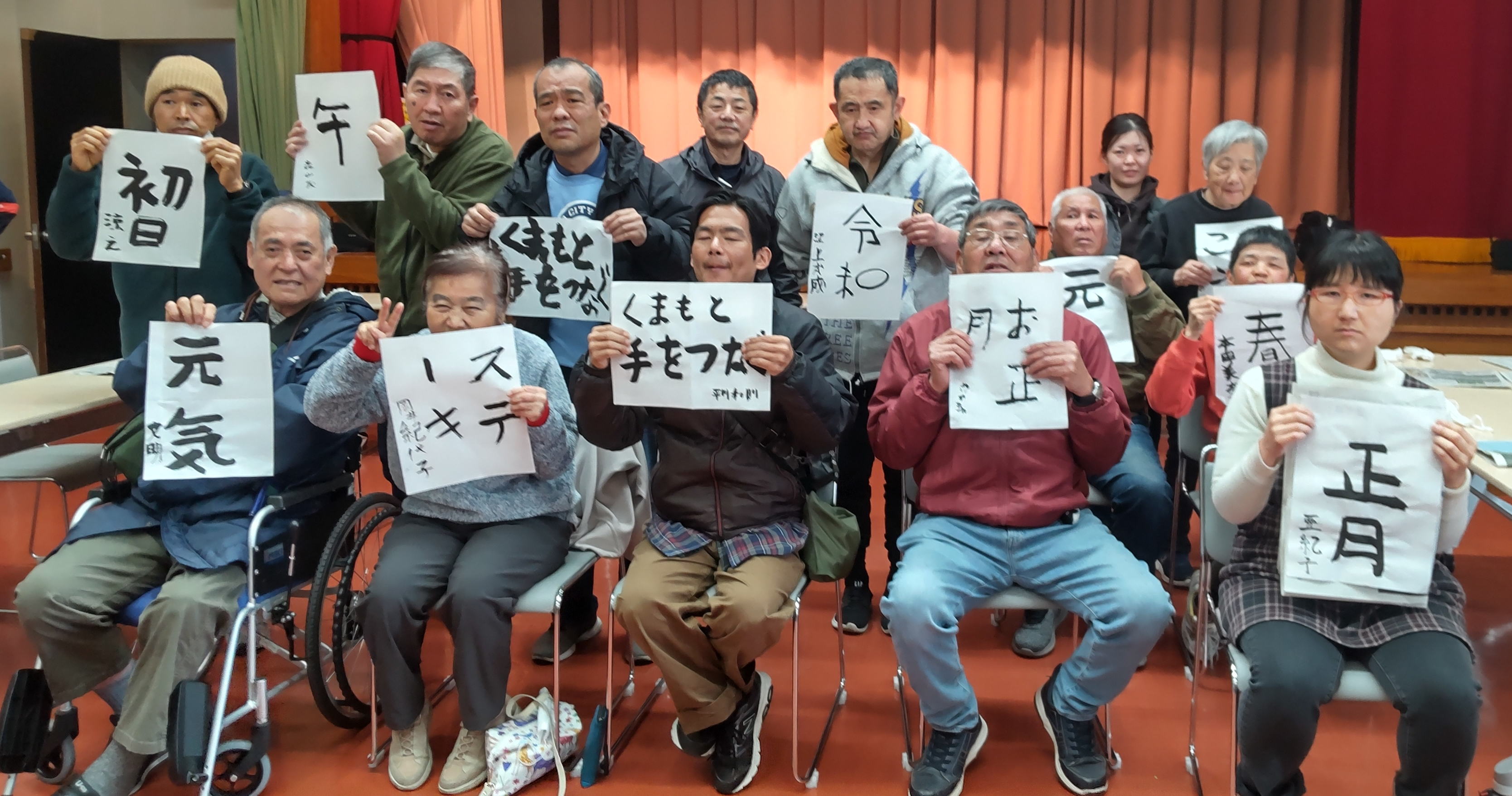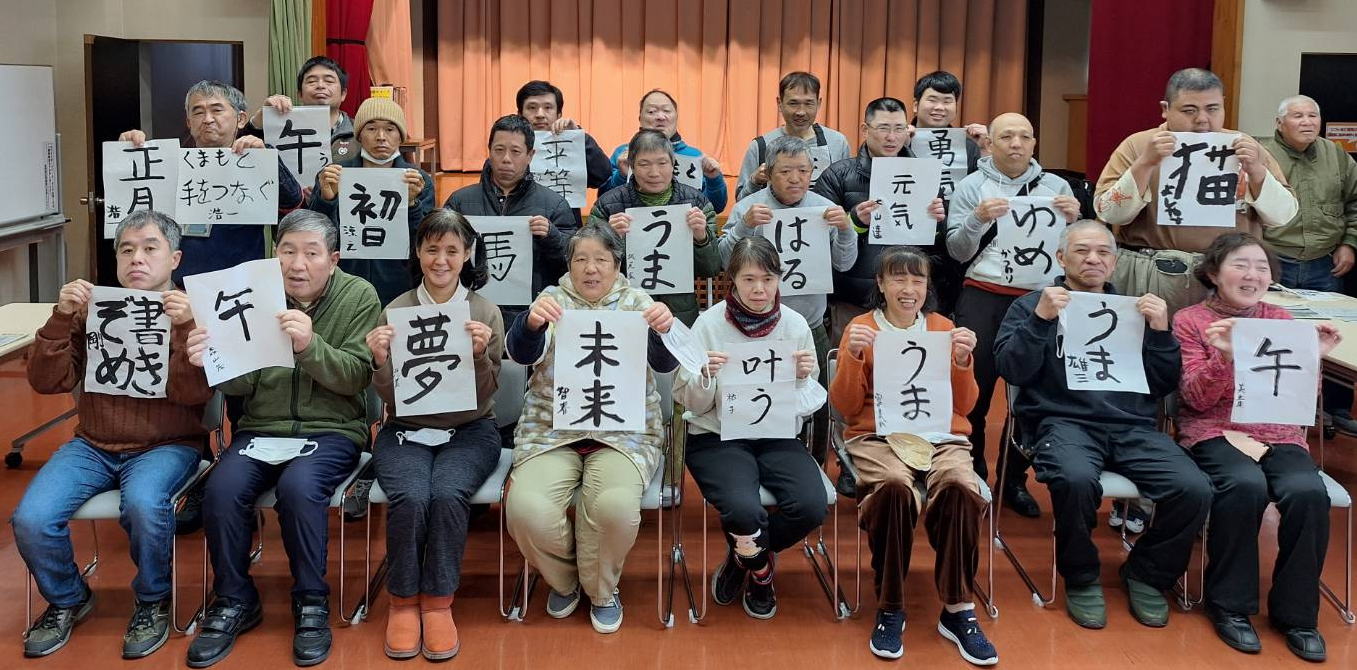 令和7年、最初の活動は、希望荘大ホールで、書き初めでした。