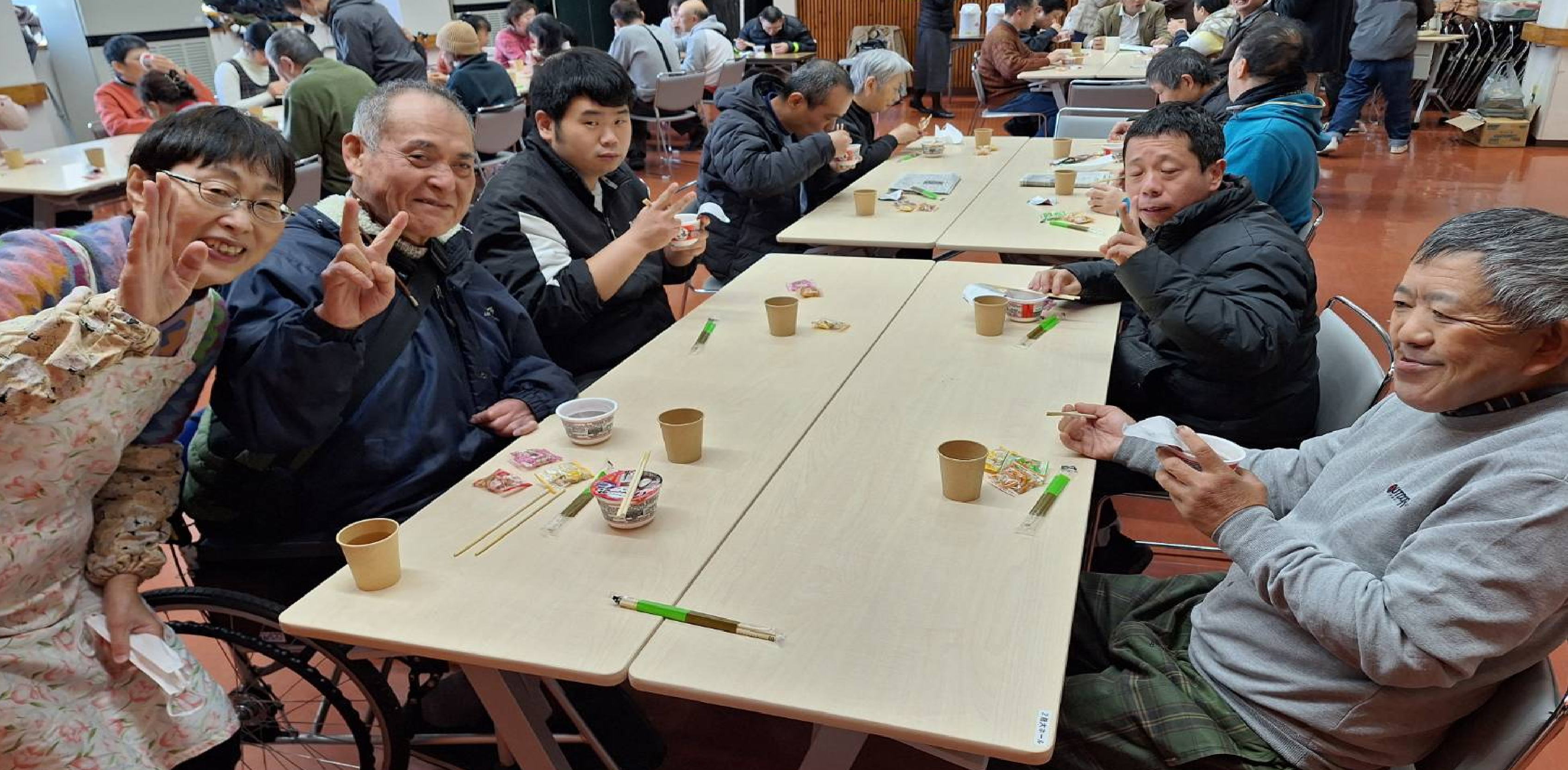 大ホールで、全員で会食をしました。みんなで食べる食事はおいしかったです。